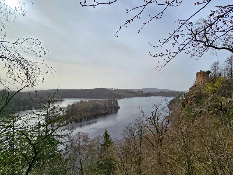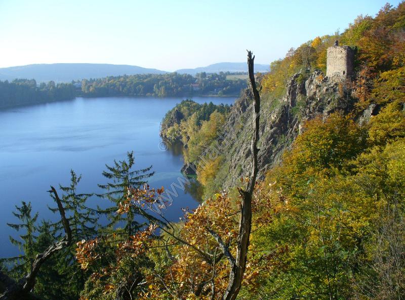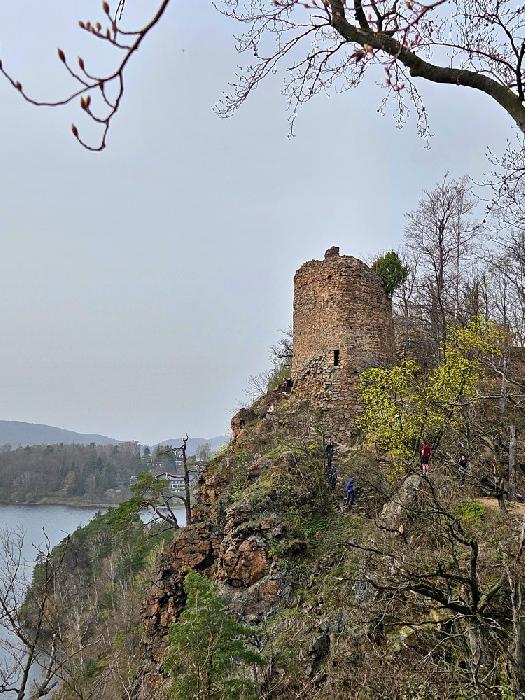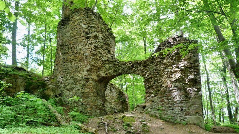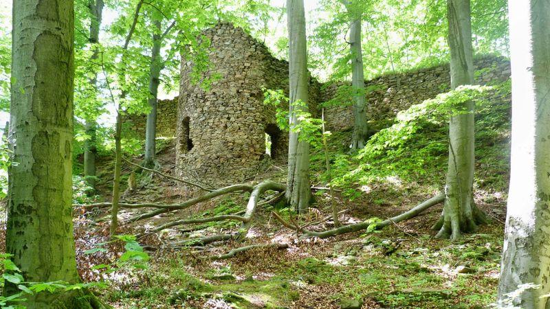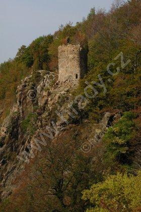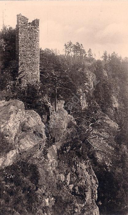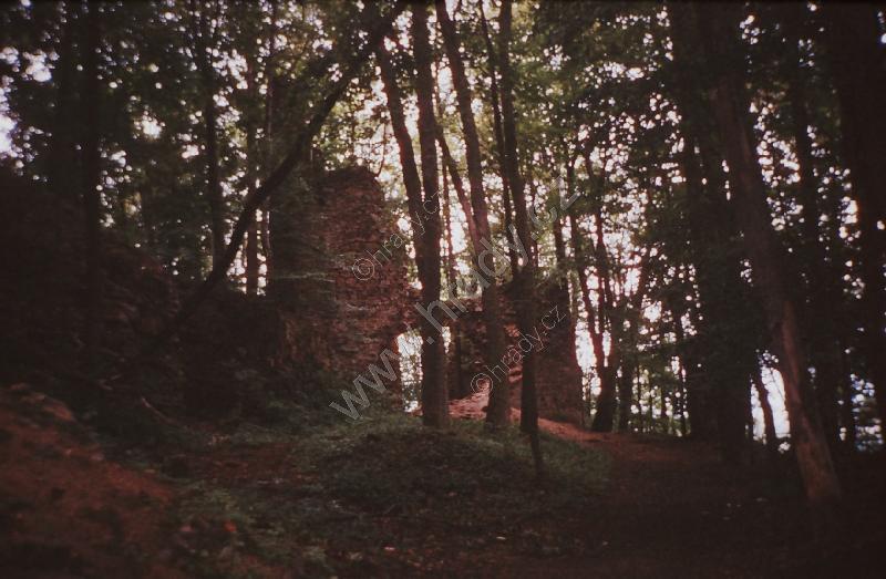 Pohlednice z roku 1946 na zříceniny hradu Oheb.