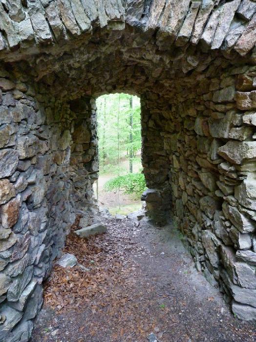 Hluboká střílna jižní bašty vnějšího opevnění, část niky je završena záklenkem, část rovnými překlady z kamenných desek