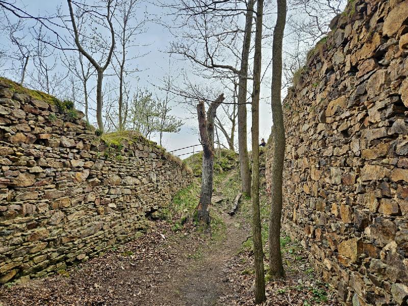celkový pohled na vnitřní líc nejmladšího pásu hradního opevnění