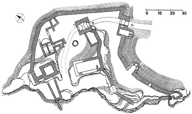 Interiér podlouhlé budovy, která se na JZ napojovala na skalisko, na němž byla vybudována snad obytná věž (zatím neurčeného stáří)