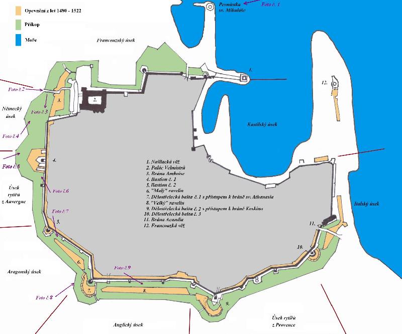 Mapa hradeb starého města Rhodos s palácem velmistrů (2).