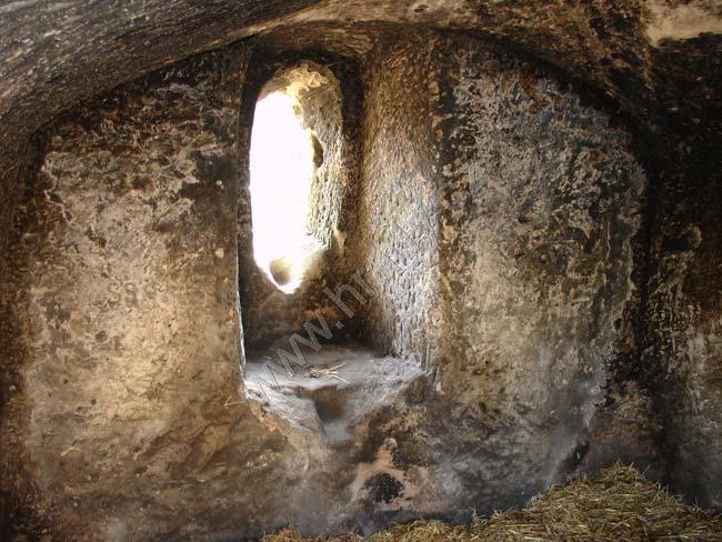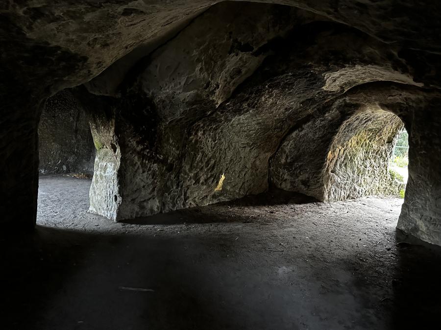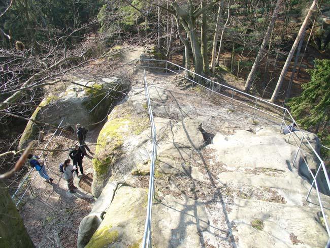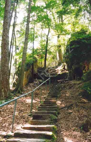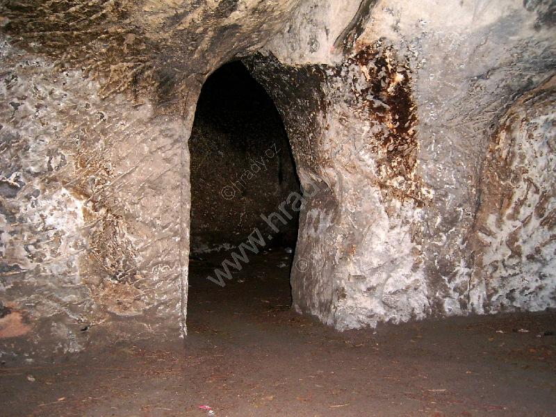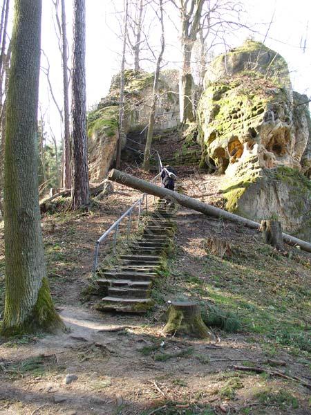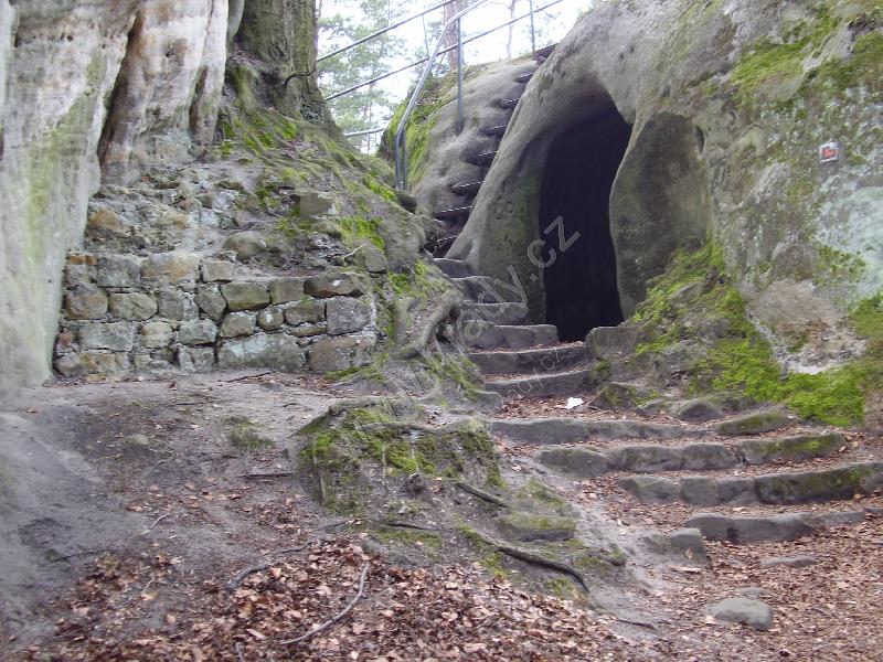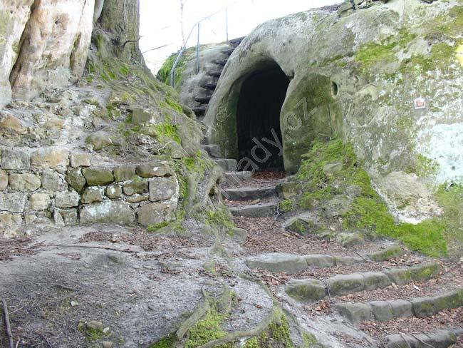 schodiště s tesanou místností v pozadí