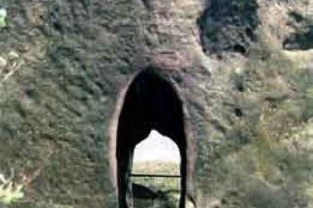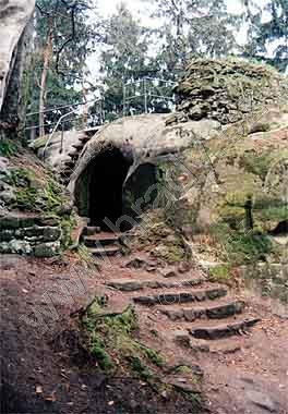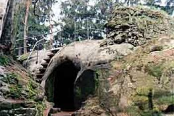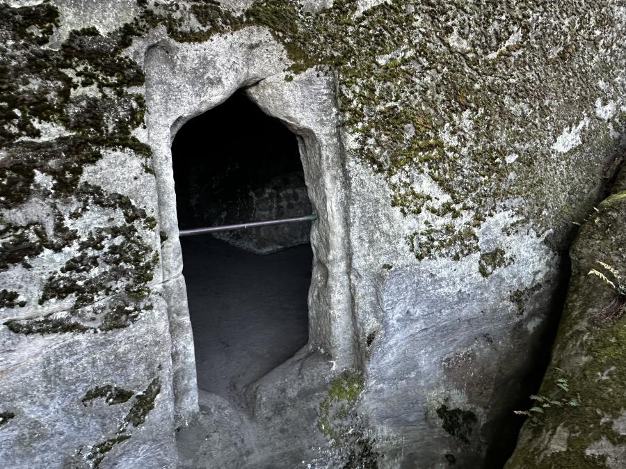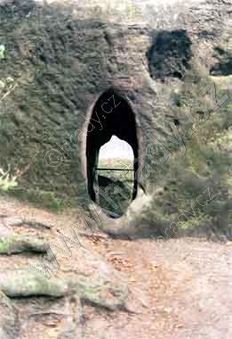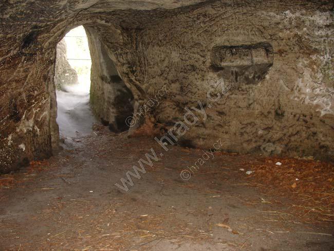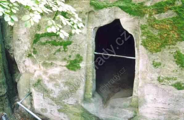 Vytesaný gotický oblouk vstupu do skalní světničky