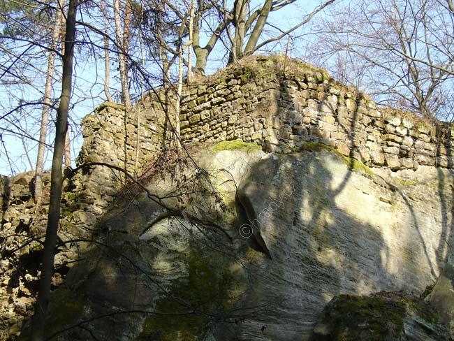 Hrad byl zděn z přitesaných pískovcových kvádříků, mezi nimiž byla pískovcová drť a menší lomový kámen zalévaný maltou.