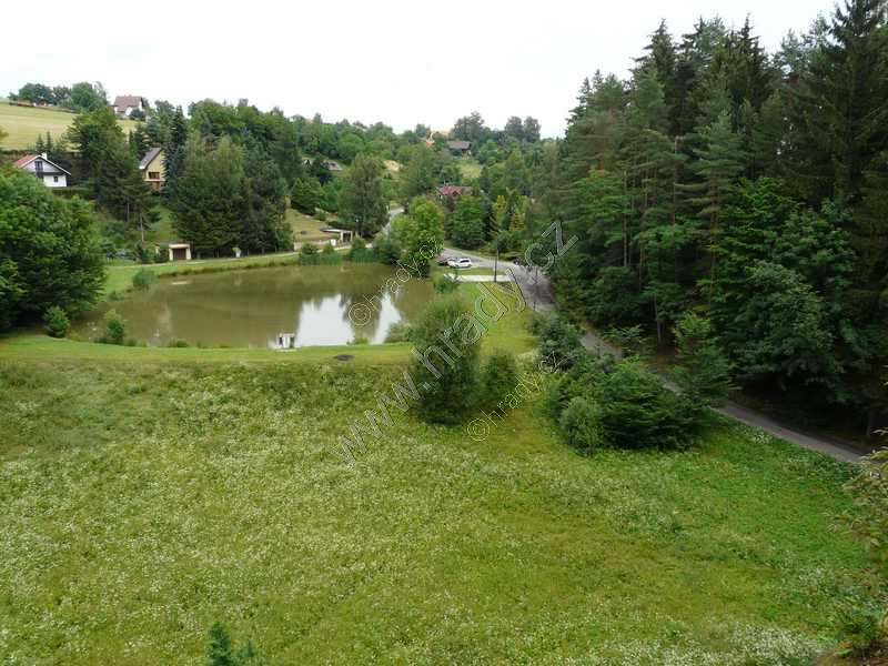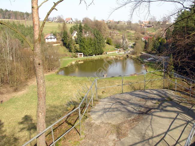 Pohled z hradu na Pařezský rybník a obec Pařez