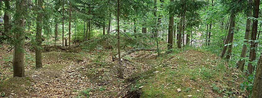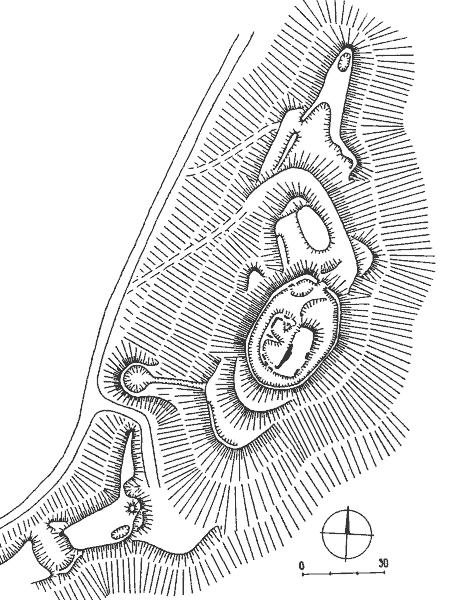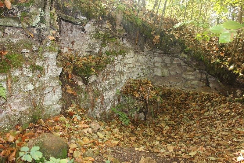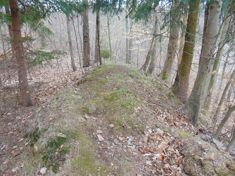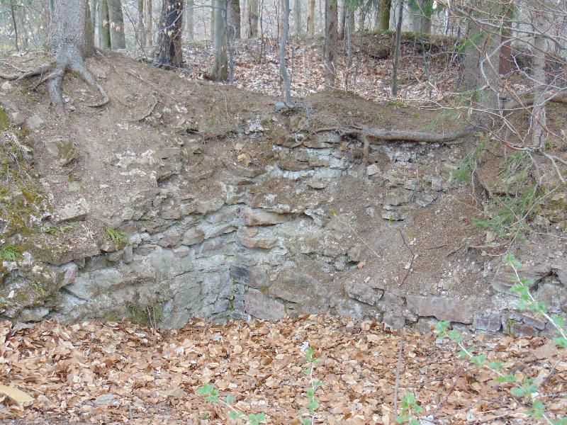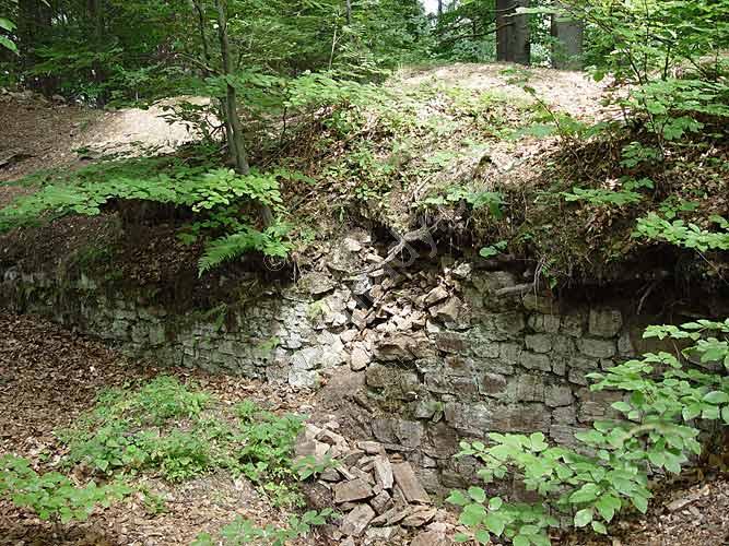 Obvodová plášťová hradba v sz rohu hradu, k ní přistavěný neznámý objekt