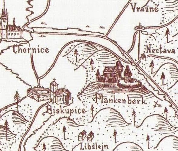 Hrad Plankenberk na mapě v knize Letopisy města Jevíčka.