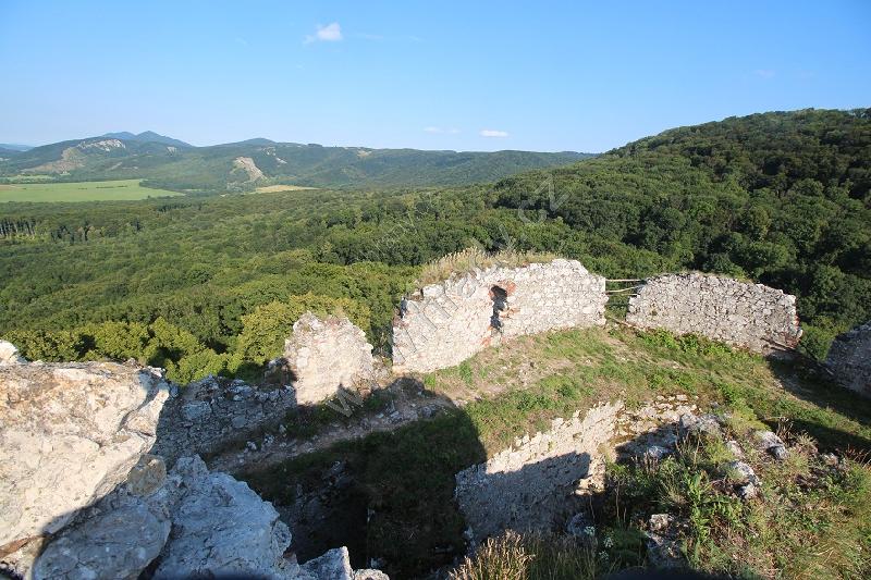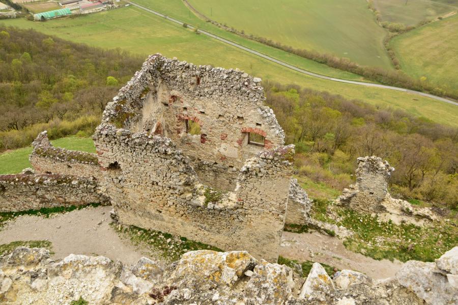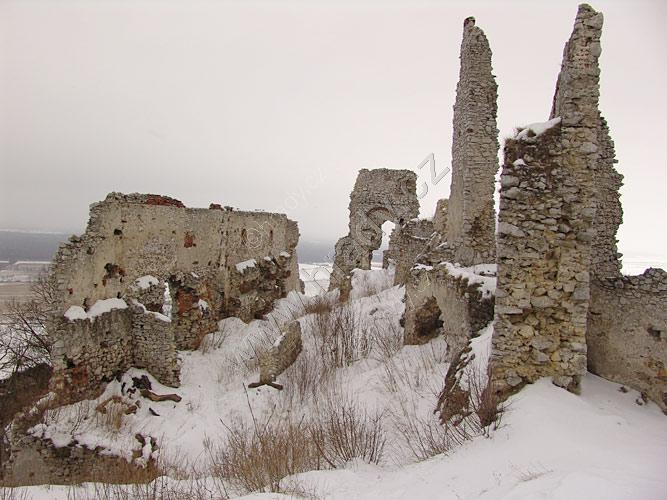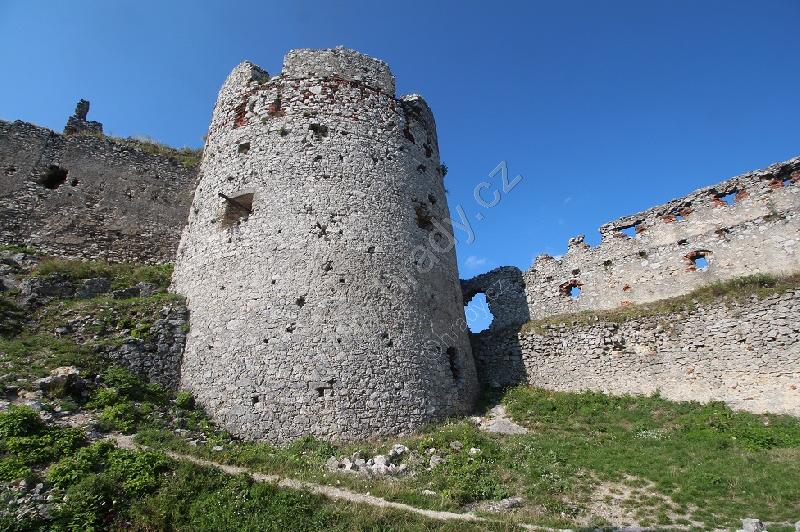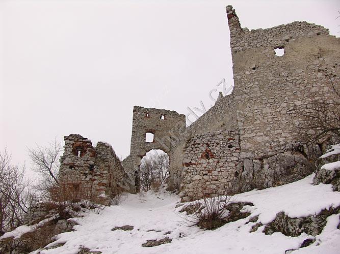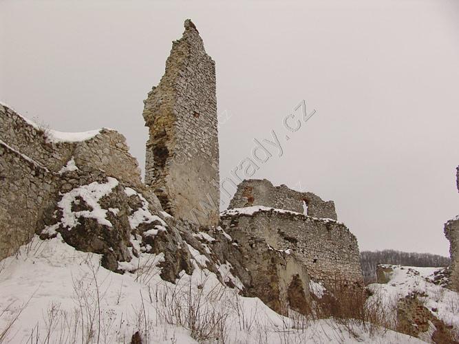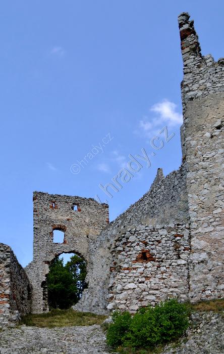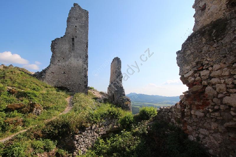 Zříceniny horního hradu, pohled od hranolové věže