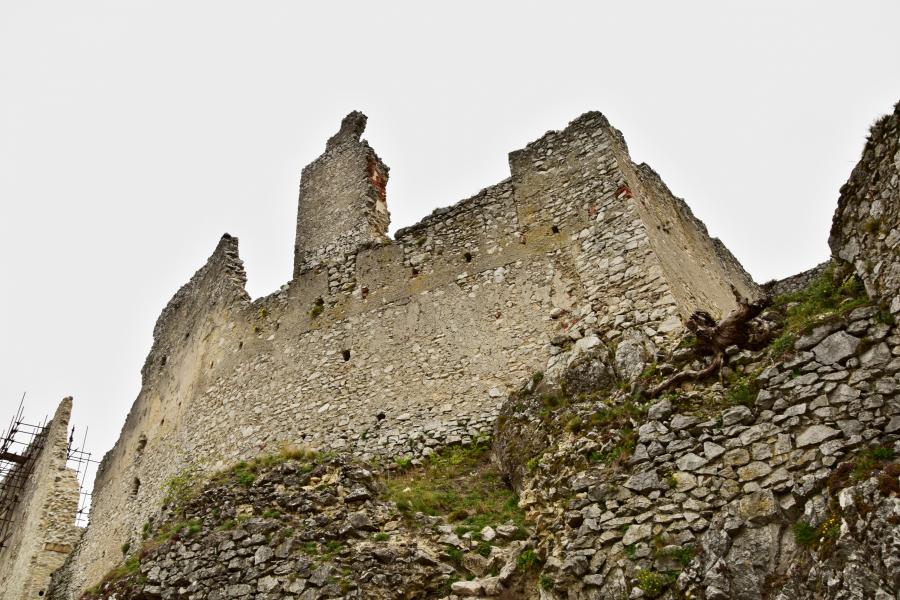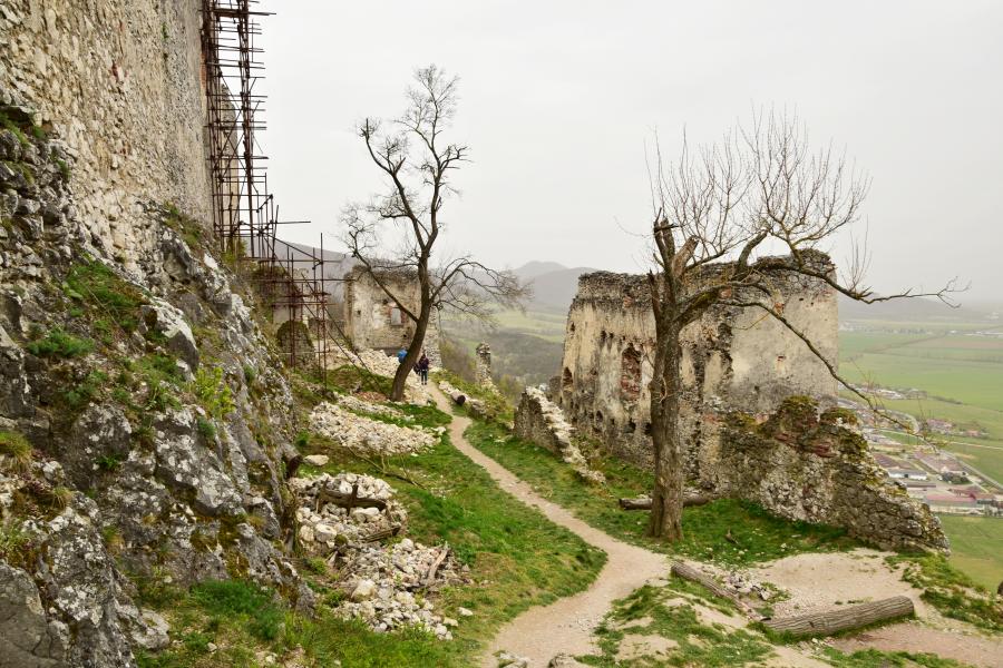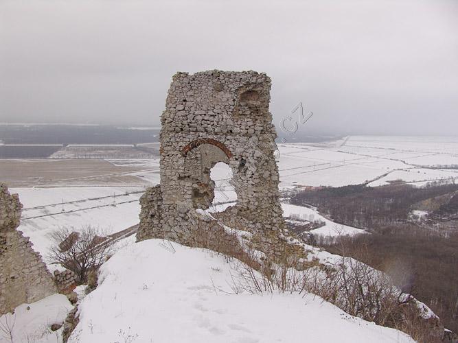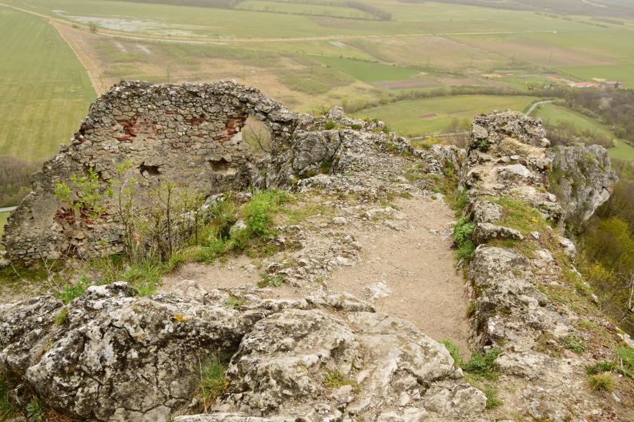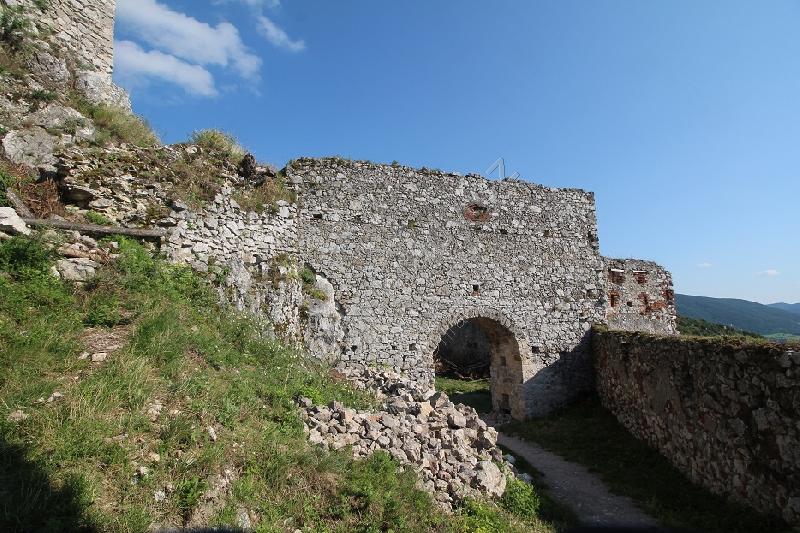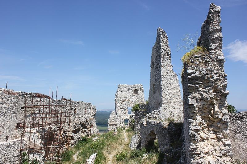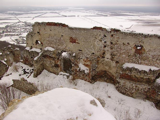 Zříceniny horního hradu, pohled od hranolové věže