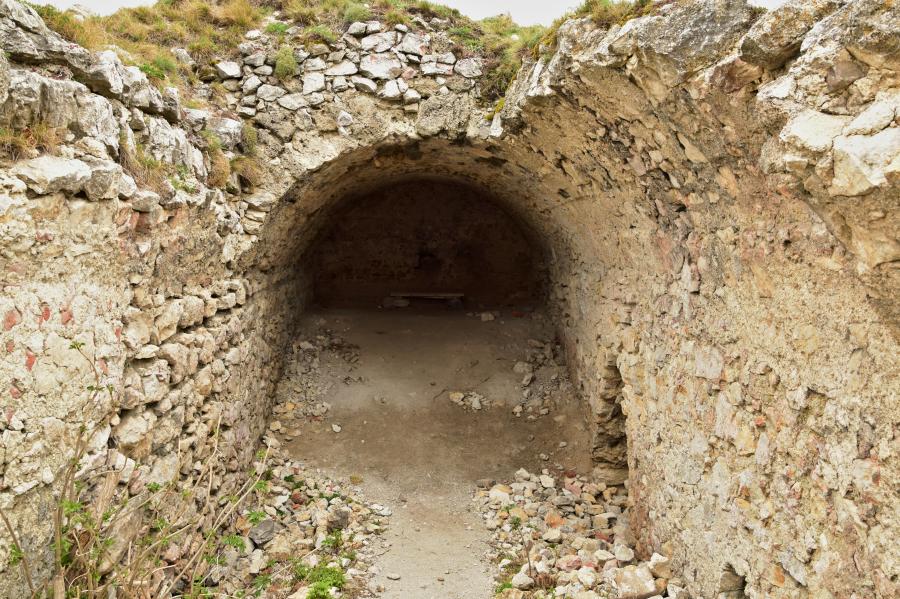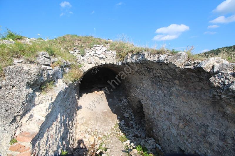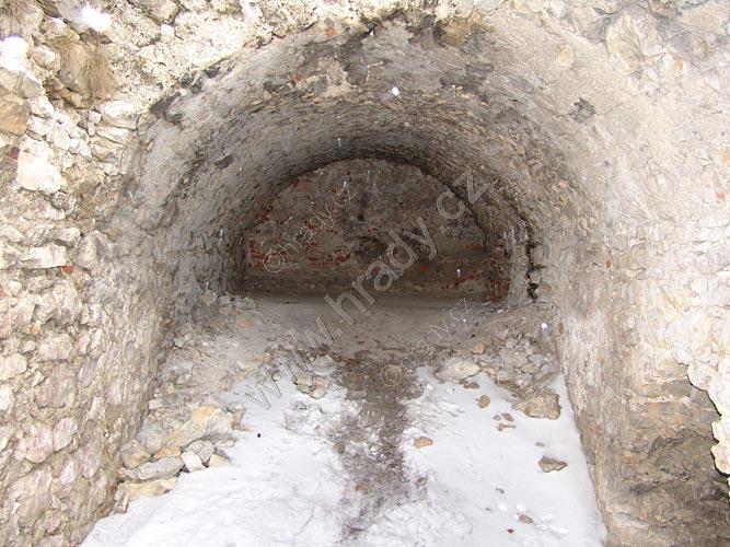 Část zachované místnosti na jižní straně jádra, pod hranolovou věží