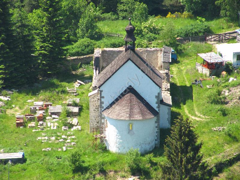 Zbytky románského kostela sv. Jana Křtitele od jihu