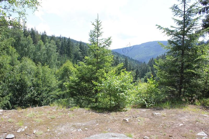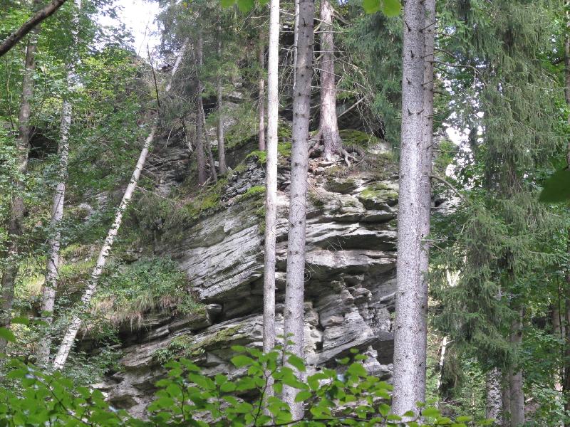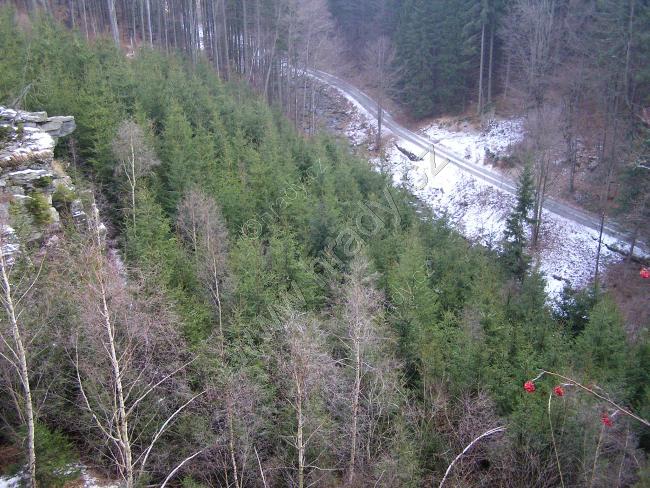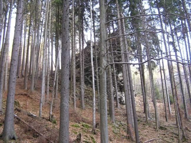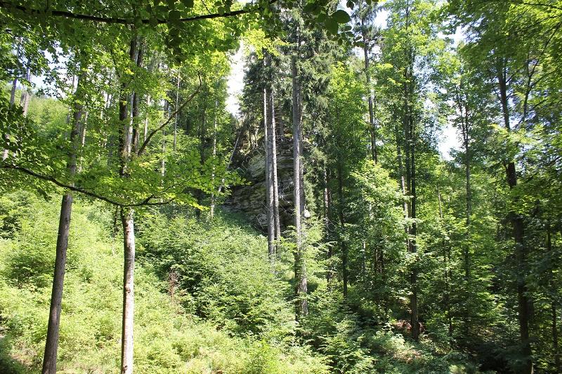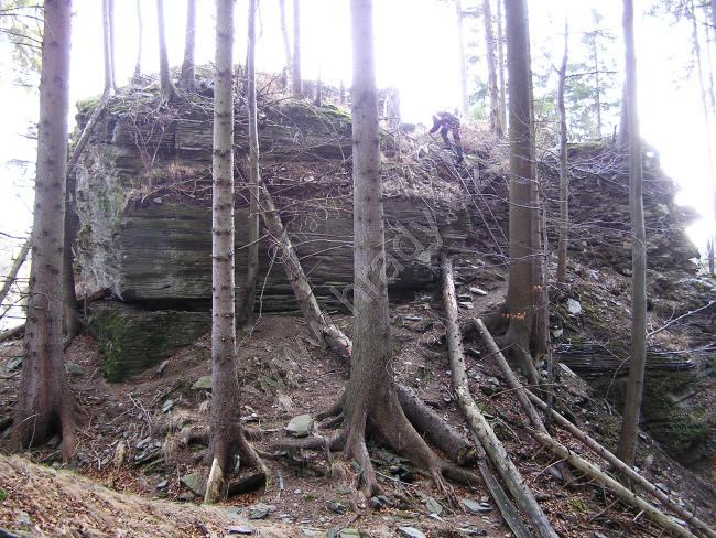 Pohled na hlavní skalisko, na kterém hrádek stával od severozápadu