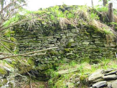 Detail poškozeného zdiva severní stěny hlavní budovy hrádku