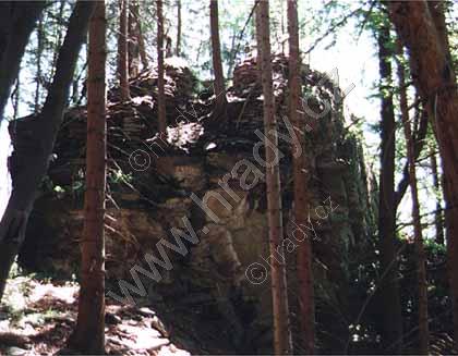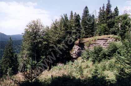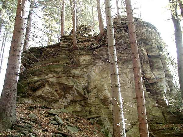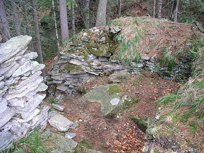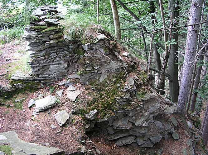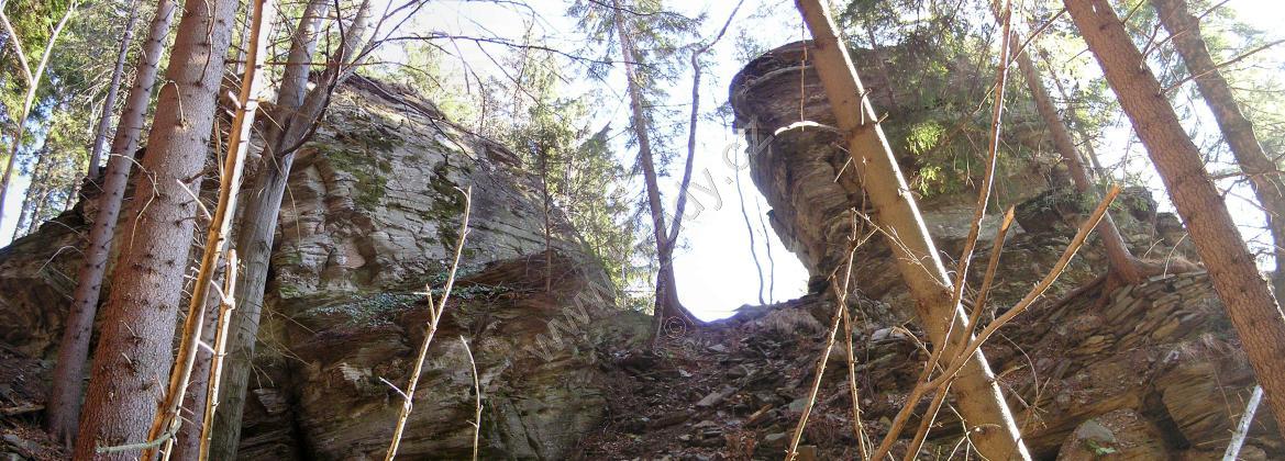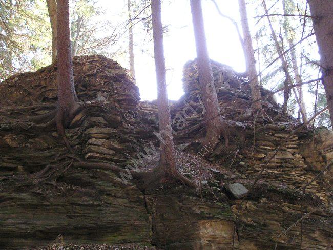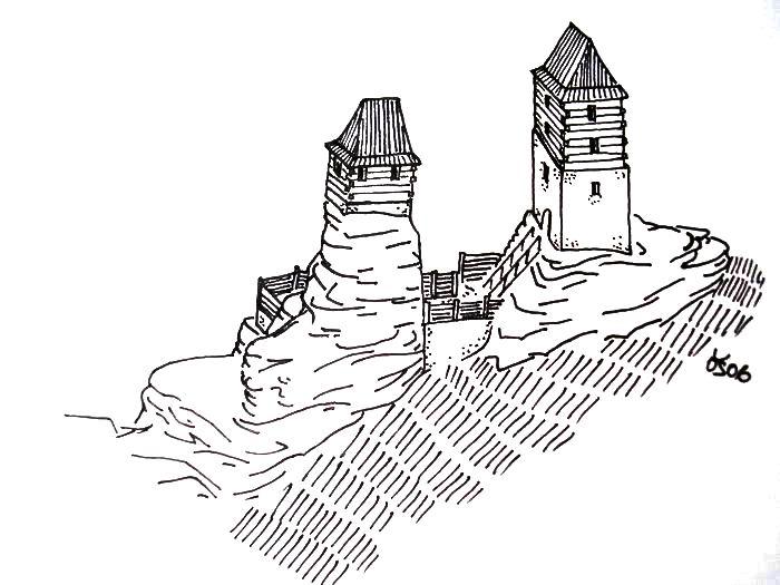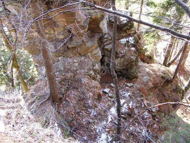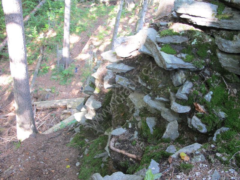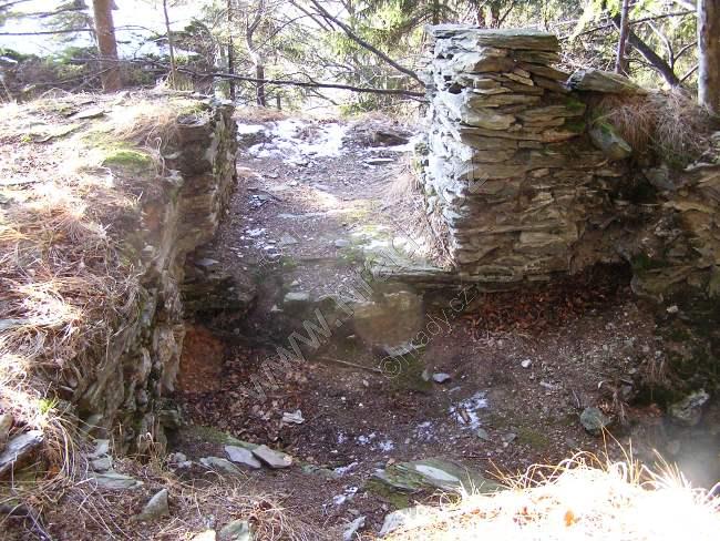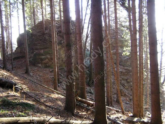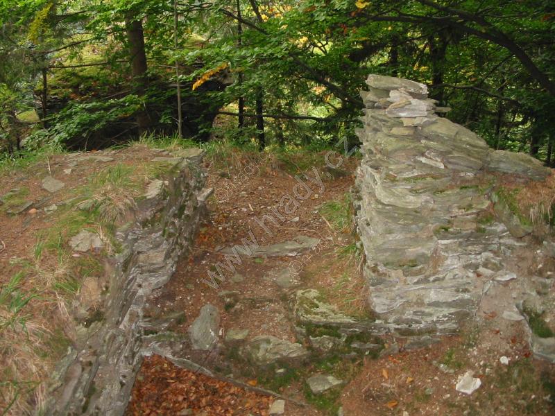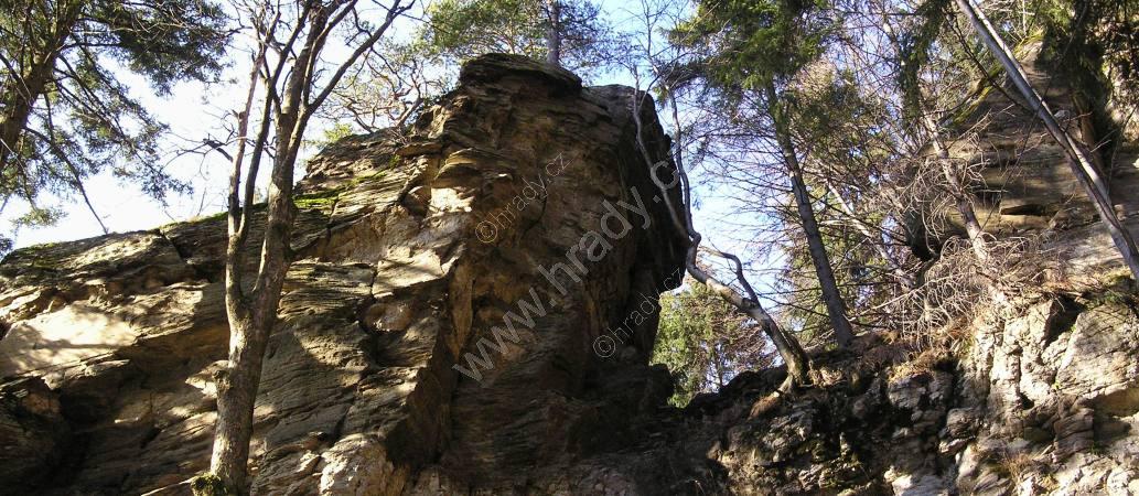 Na levé skále se nacházejí pozůstatky základů kamenné stavby (strážnice). Na pravé skále se nacházela těžko přístupná vyhlídka, ze které bylo možno hlídat ruch na níže položeném Pustém zámku. Obě skály spojovala kamenná hradba. Někde z této strany se vcházelo do malého prostoru mezi oběma skalami.