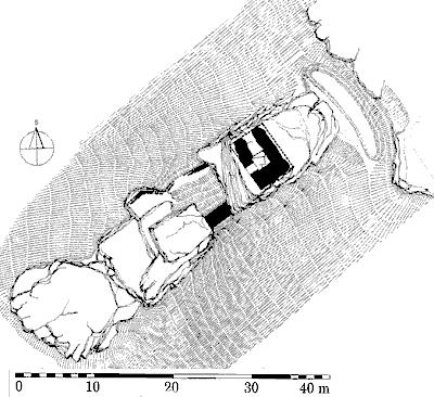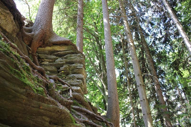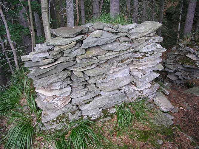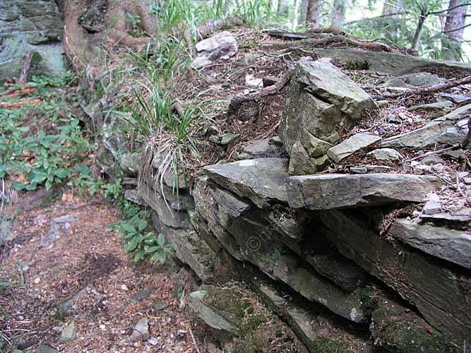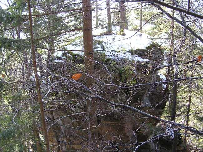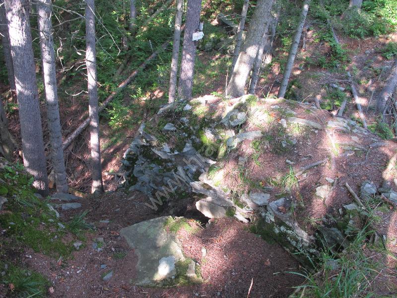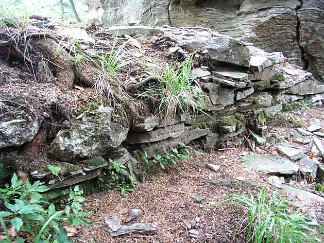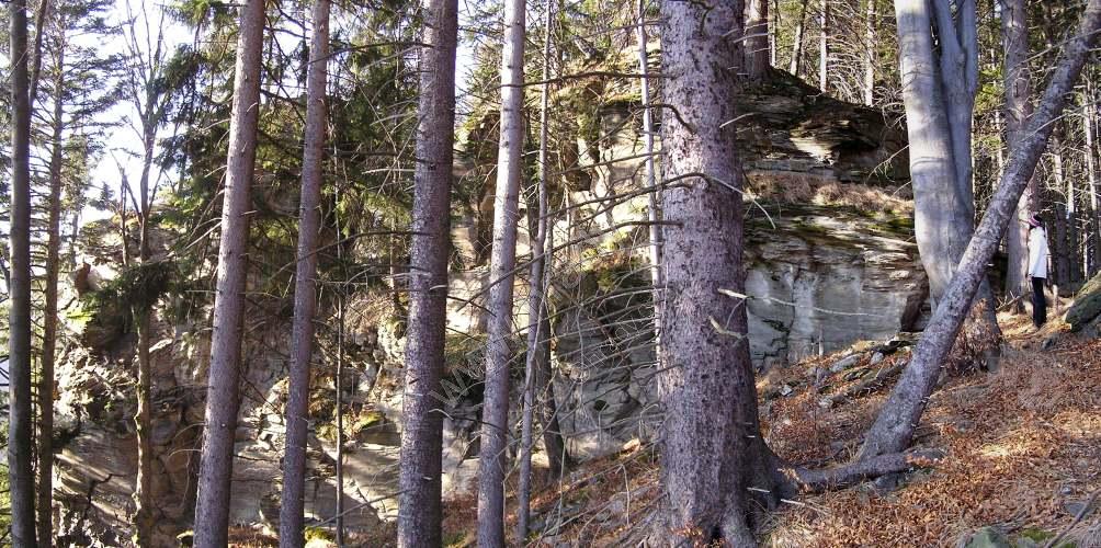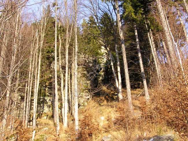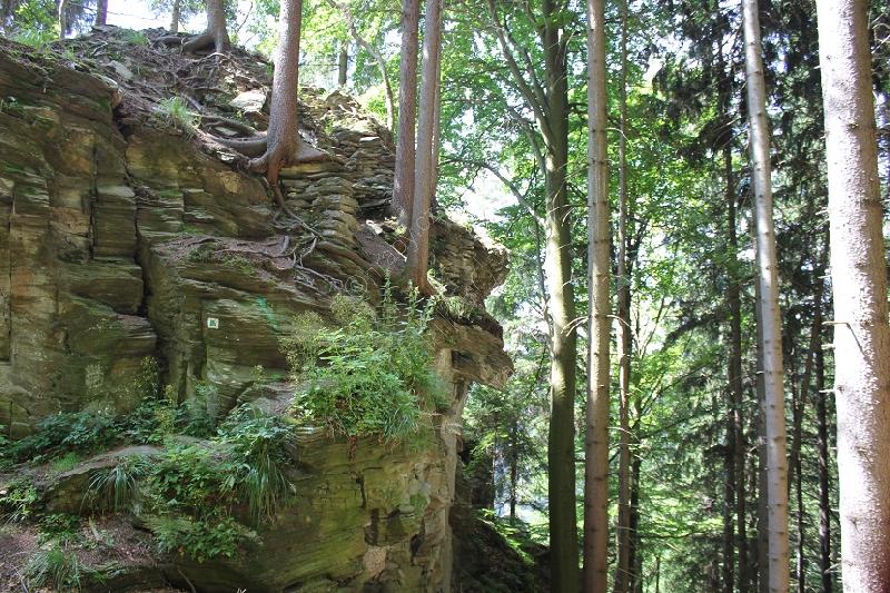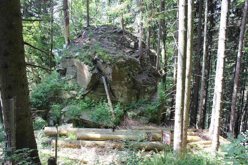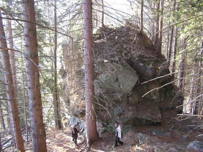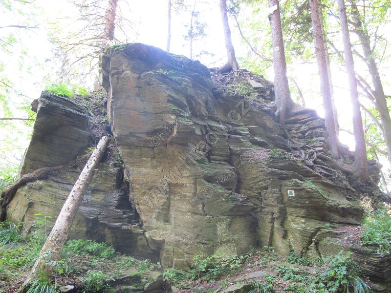 Na levé skále se nacházejí pozůstatky základů kamenné stavby (strážnice). Na pravé skále se nacházela těžko přístupná vyhlídka, ze které bylo možno hlídat ruch na níže položeném Pustém zámku. Obě skály spojovala kamenná hradba. Někde z této strany se vcházelo do malého prostoru mezi oběma skalami.
