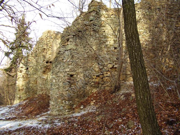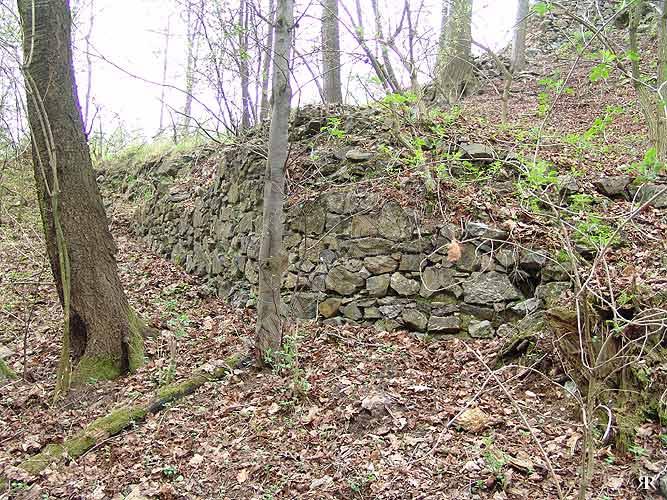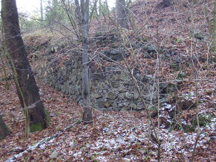 Zbytky ohradní zdi pod jádrem