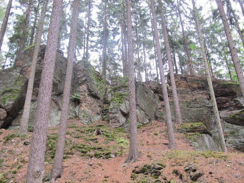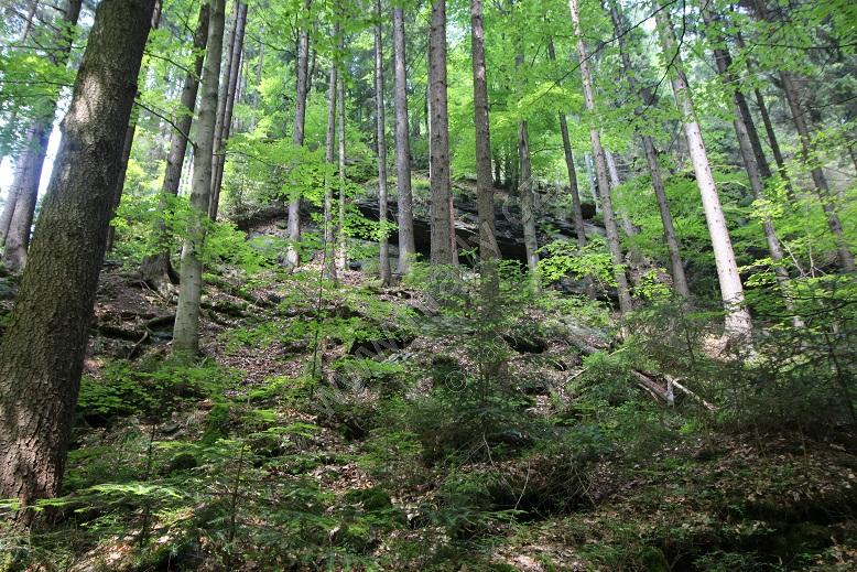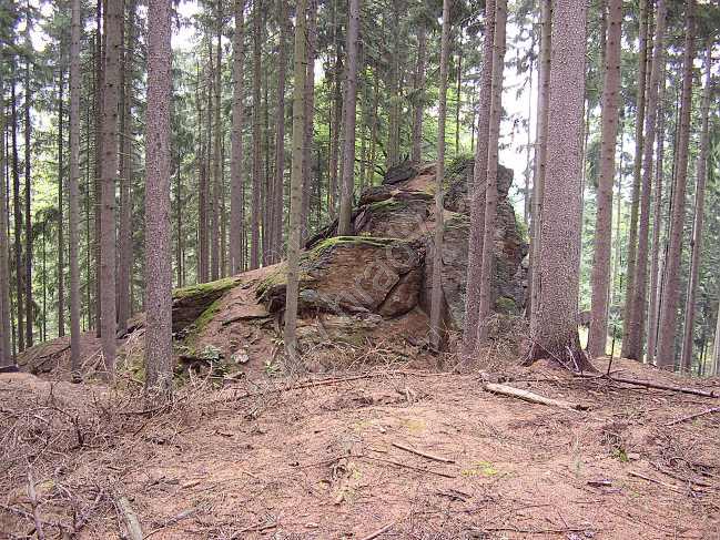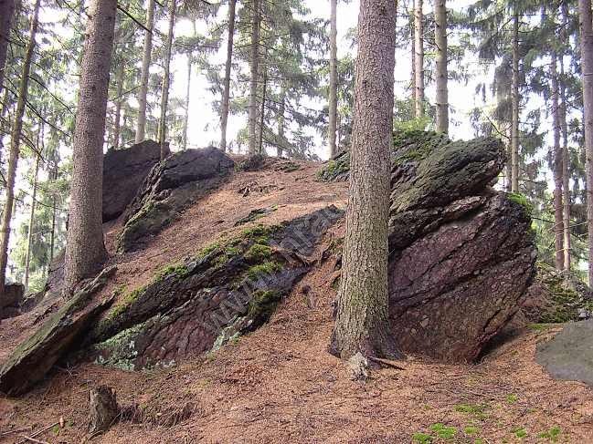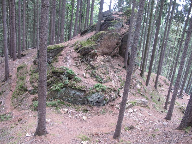 Pohled z jižního srázu na skalisko z vlastním hradem