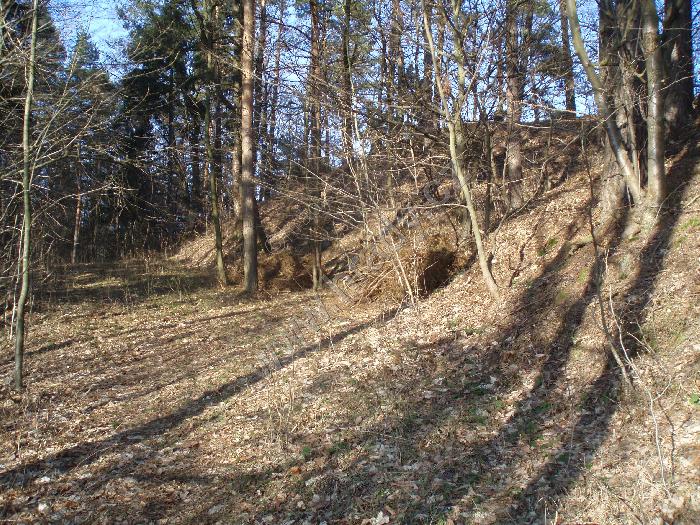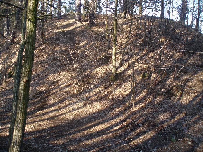Hradní příkop a mohutný val na sverovýchodí straně, kde byl přístup k hradu nejsnadnější.
