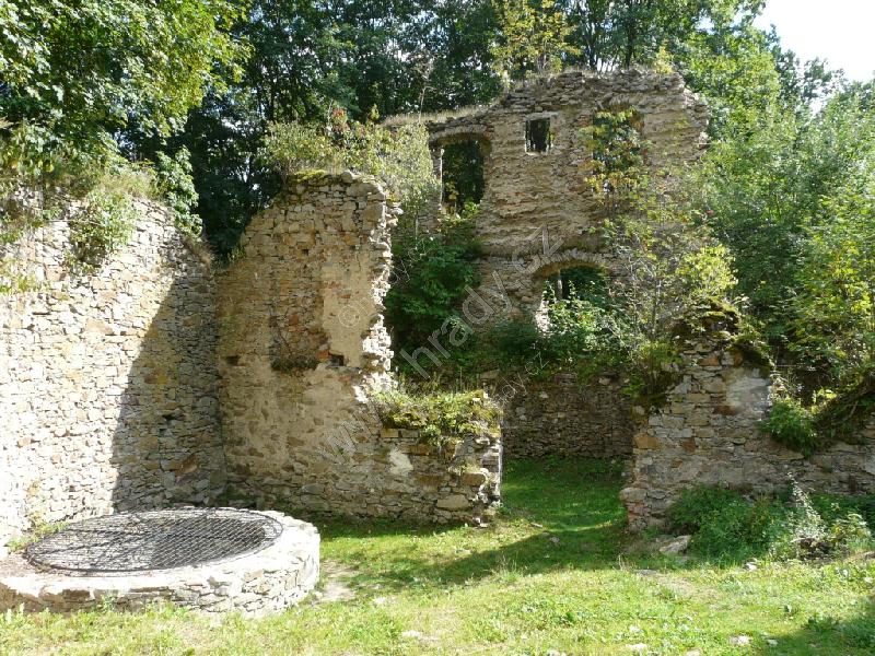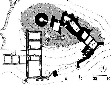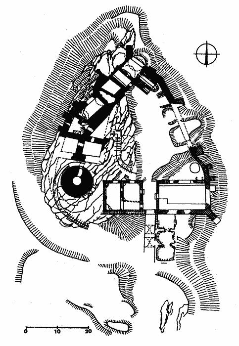 Terénní náčrt jádra hradu podle J. Pešty