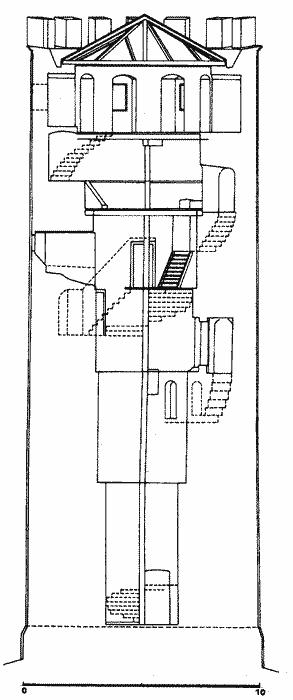 Černě zdivo z prvé poloviny 14. století, na konstrukci šikmo křížkovaně pozdně gotické zdivo, na konstrukci kolmo křížkovaně renesanční zdivo