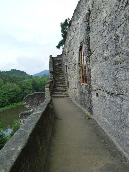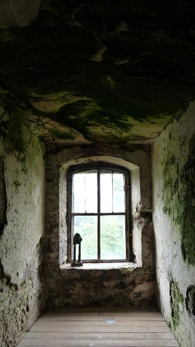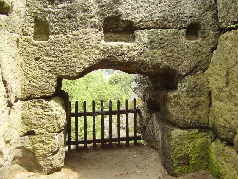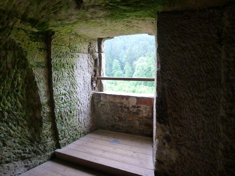 Okno skalní místnůstky v západní části hradu, výhled na sever.
