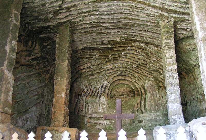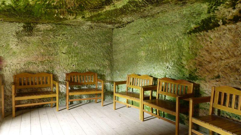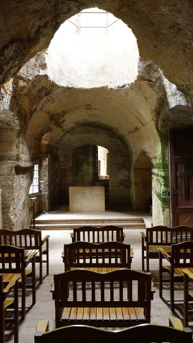 Interiér kaple tesané ve skále