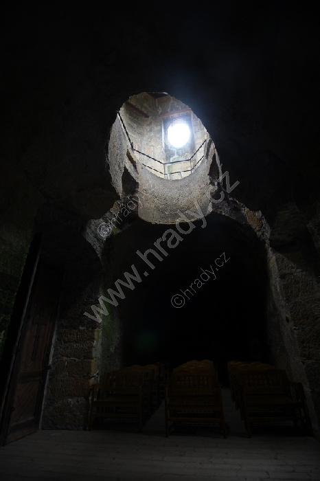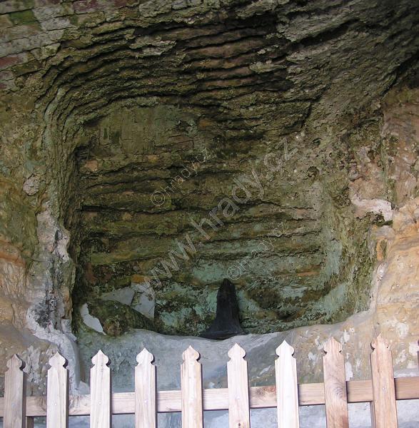 Vpravo okno lucerny skalního kostela