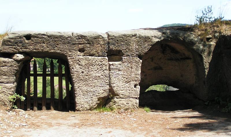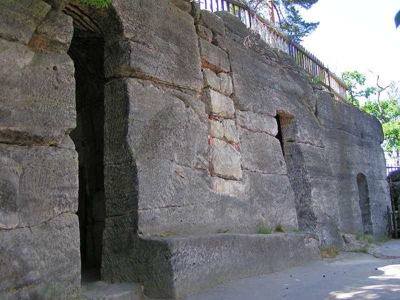 Vchod do dvou umělých, historizujících jeskyní