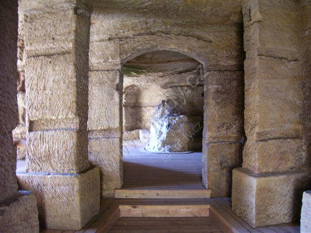 vchody do umělých jeskyní, lucerna skalního kostela