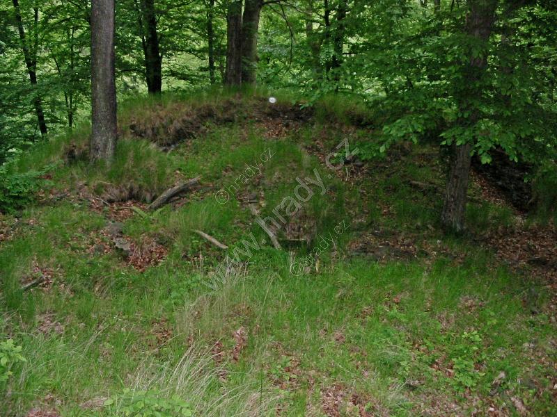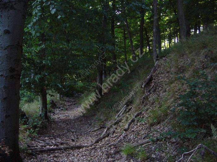 tato pěšinka od jz. vede po úzké šíji k hradu