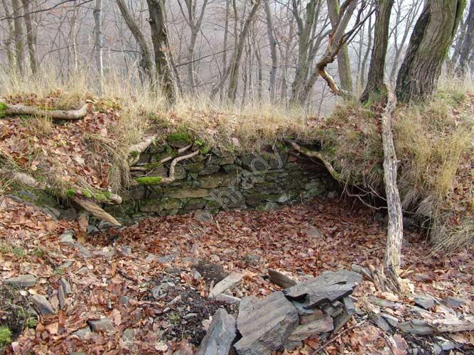 Zbytek místnosti stavení, částečně zasekaného do skály