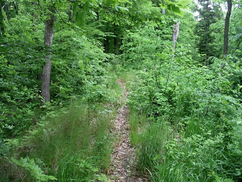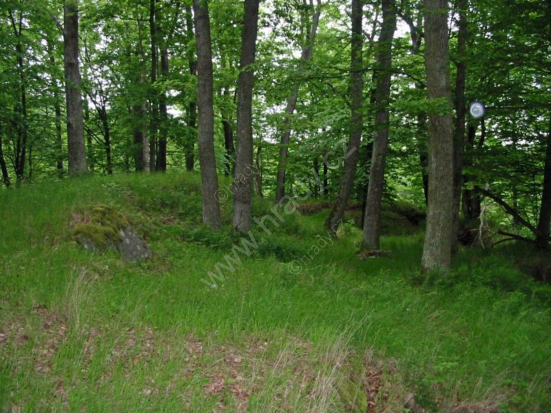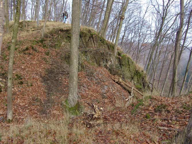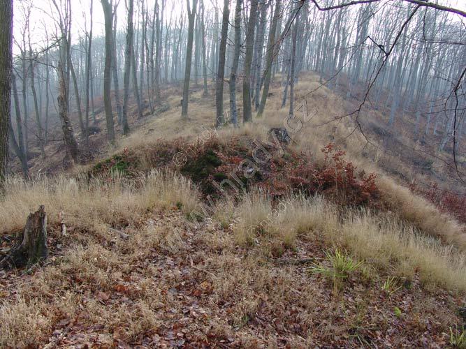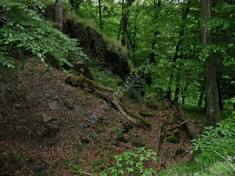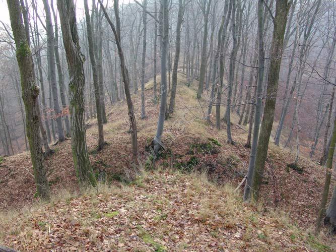 pohled z jádra na val....jak je vidět svah je zarostlý, od cesty se kopec jeví jako každý jiný