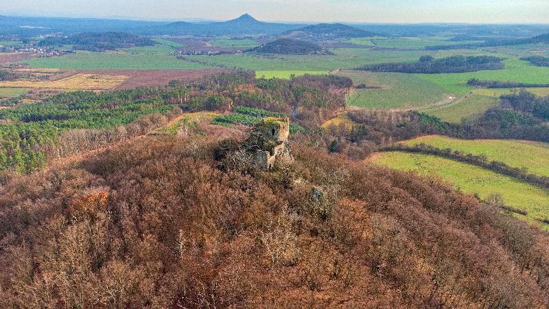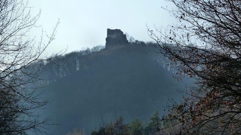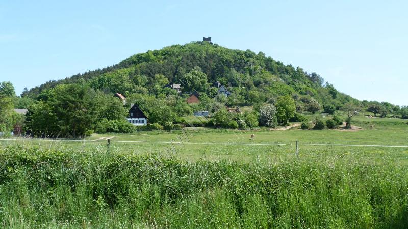 pohled z Vrchovan na Berštejn tyčící se na kopci
