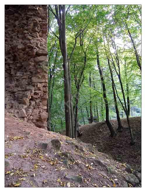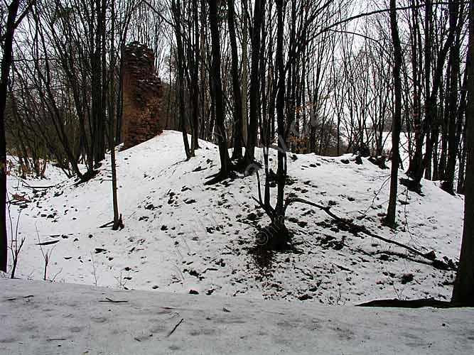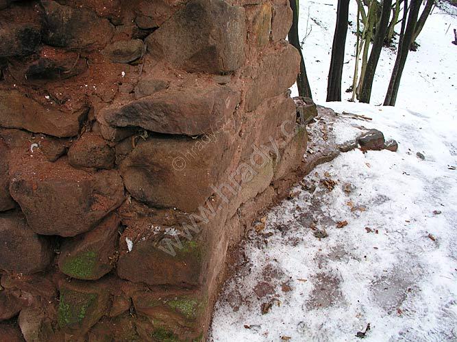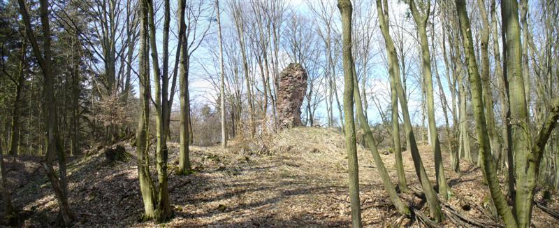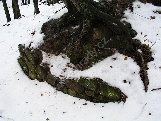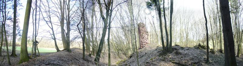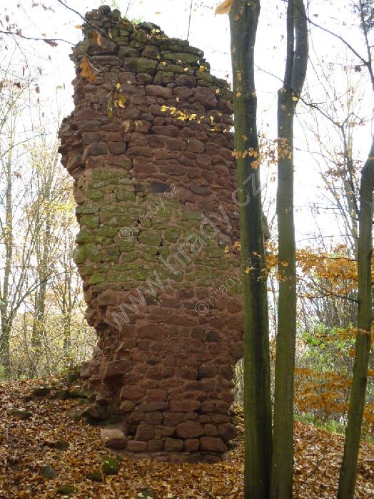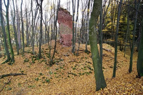 Osamělý střep věže, z vnitřní strany je patrný ústupek ve zdivu, patrně pro konstrukci stropu