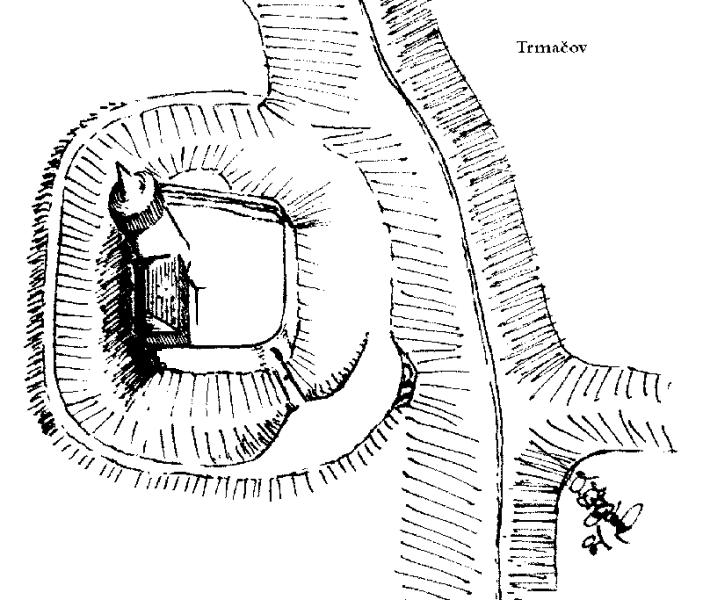 pravděpodobná podoba hradu (varianta s branou v jihovýchodní hradbě)