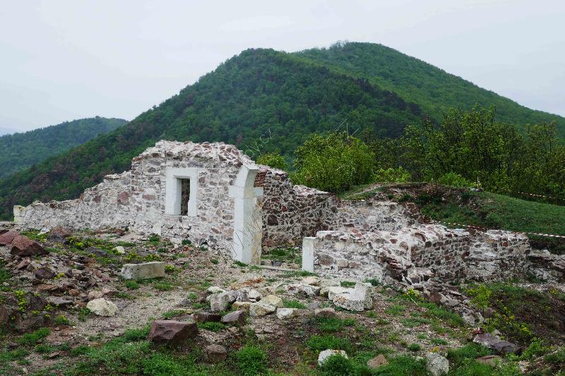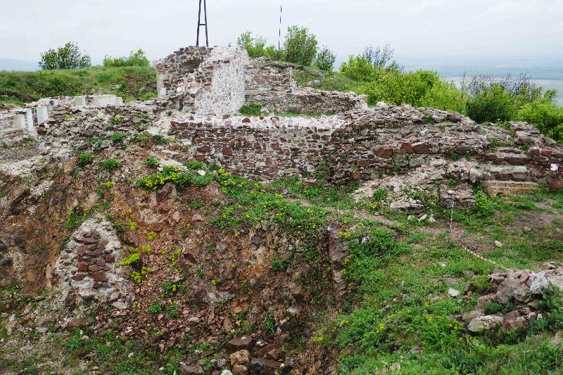 Trojúhelná věž v SZ čele předhradí. Na pozadí je kopec Sátor hegy (Stanová hora). Věž je v tomto stavu celá původní.