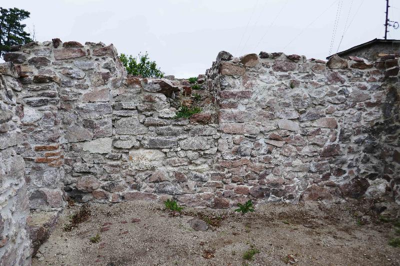 Přízemí obdélné věžové stavby v předhradí. Detail zazděného schodiště kterým se scházelo dolů do přízemí.
