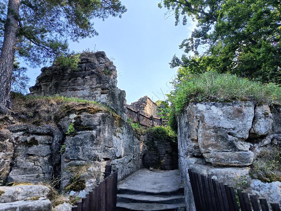 Vstup do hradního jádra se zbytkem zdiva původního hradu