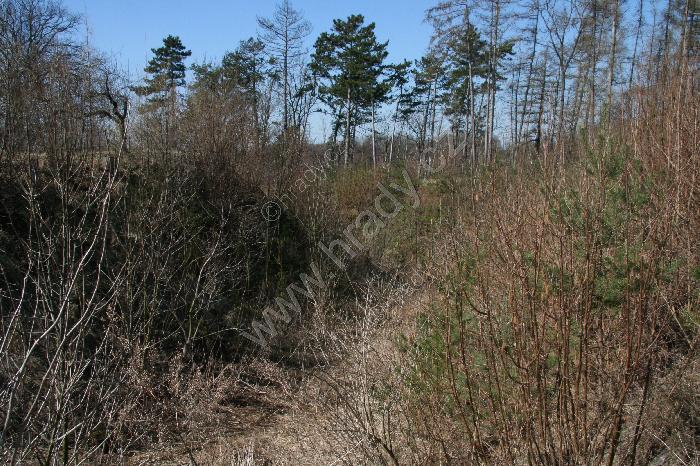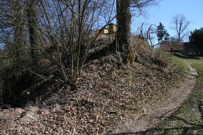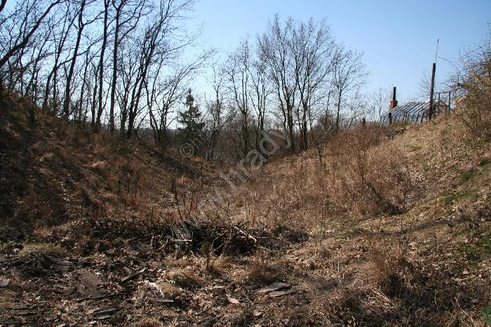 Severozápadní příkop s místem vstupu do hradu (02/2009)