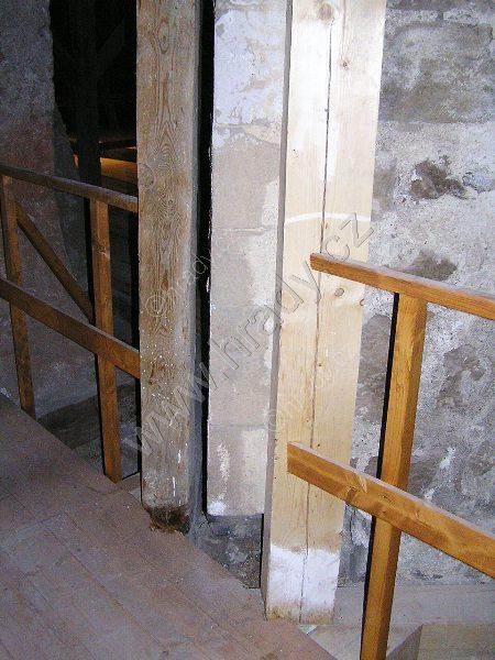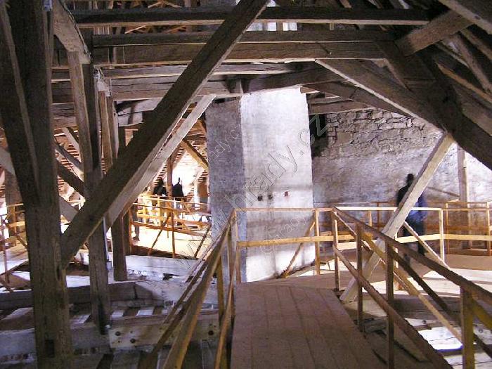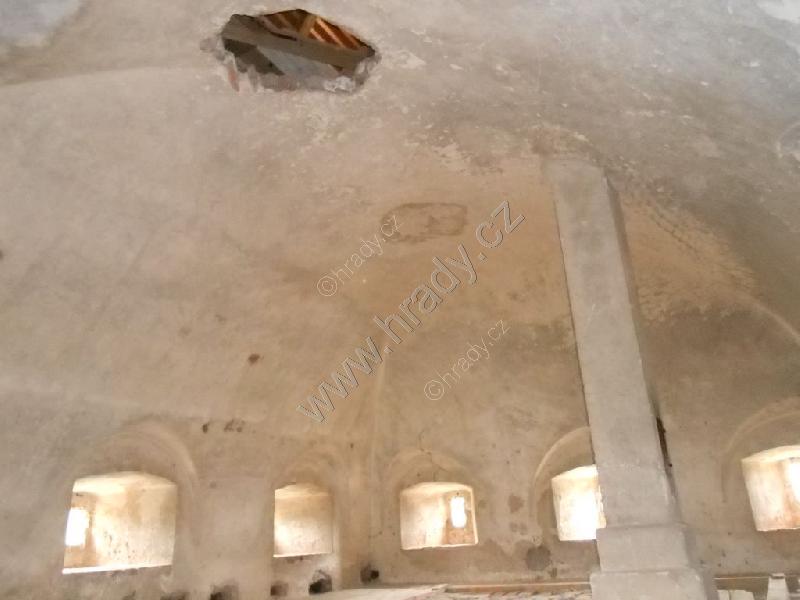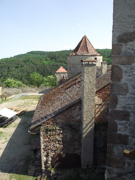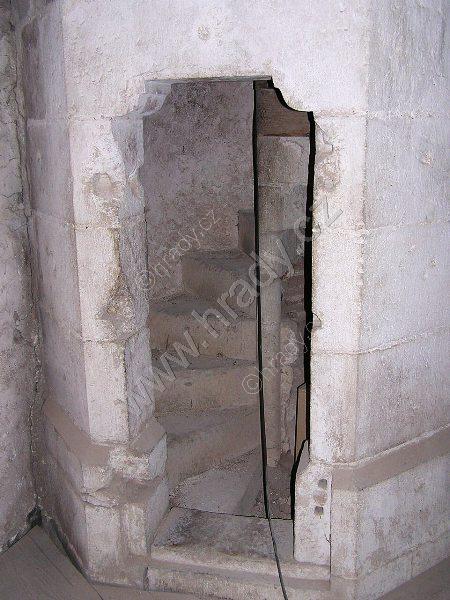 Černě je vyznačen rozsah románského hradu, zrněně rozšíření z let 1250–1400, mřížkovaně pozdně gotické, šfrafovaně renesanční, tečkovaně 17. a 18. století, bíle pozdější. Čárkovaně je vyznačen palác zjištěný R. Stránskou a P. Vitulou, tečkovaně přibližná linie dalšího gotického paláce.