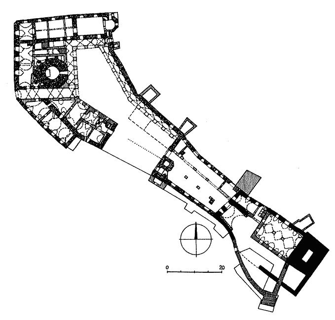 Plán přízemí vlastního hradu s náčrtem vývoje