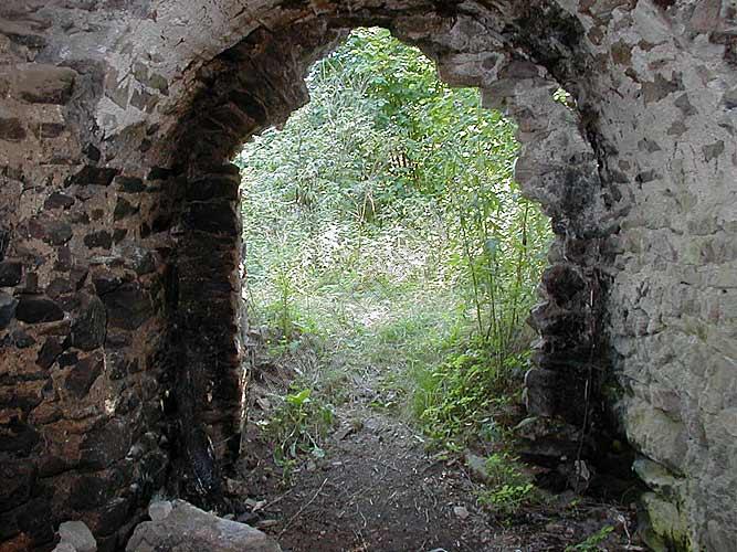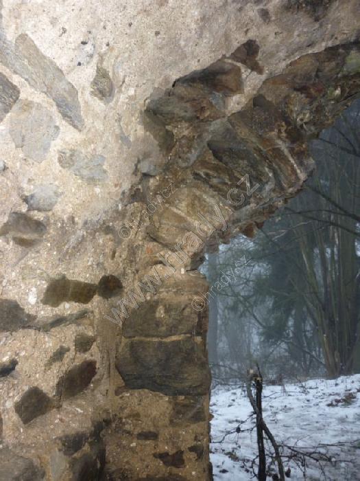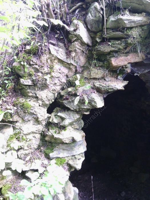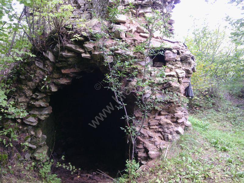 klenutá prostora, vepředu je v ní prolomen otvor, který má tvar L a je vidět opět zvenčí, k osvětlování či odvodu kouře jistě nesloužil