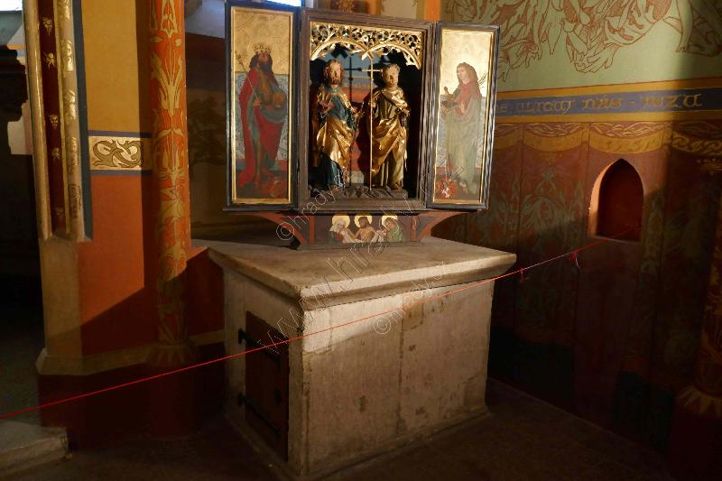 Kamna a přenosný oltář v hradní kapli.