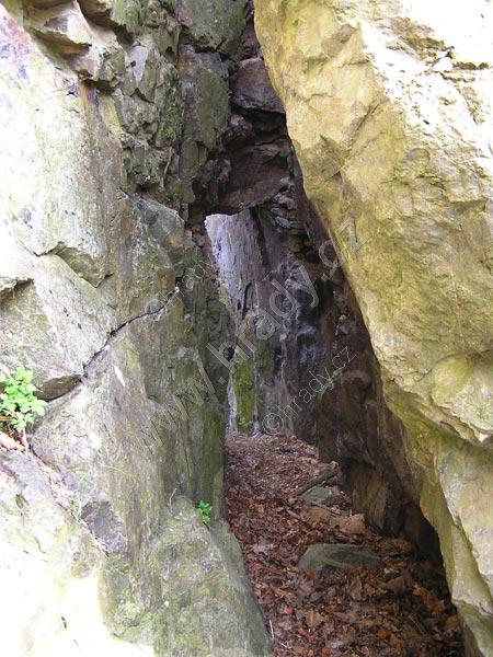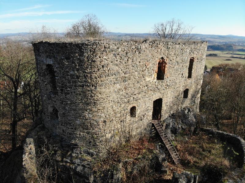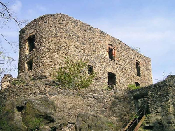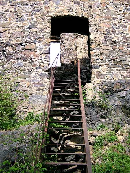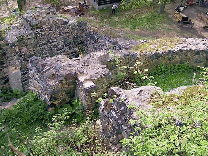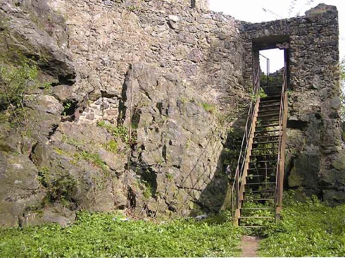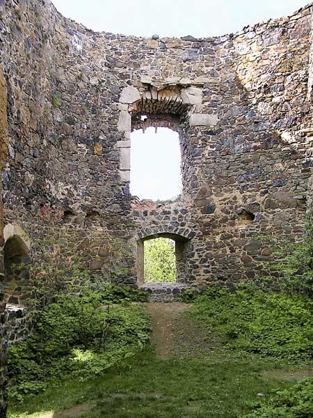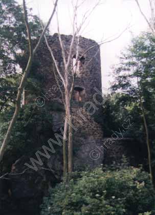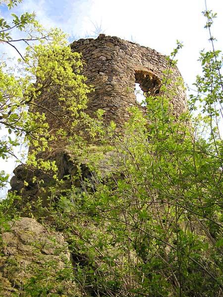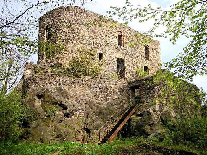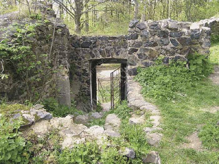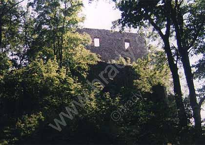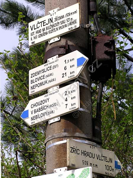 Rozcestník pod hradem při silnici. Výchozí místo pro přístup ke zřícenině hradu
