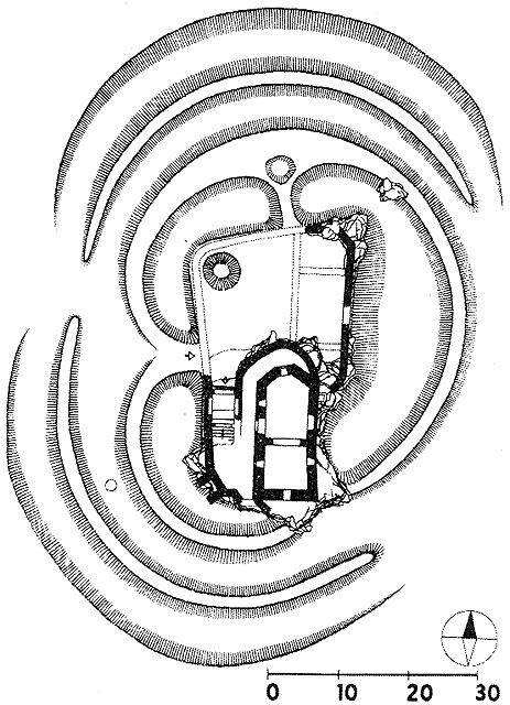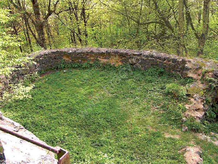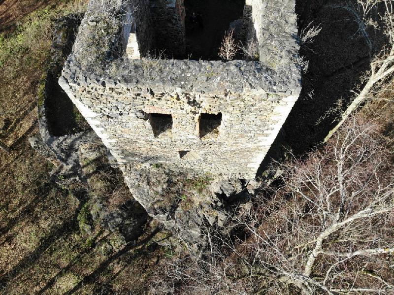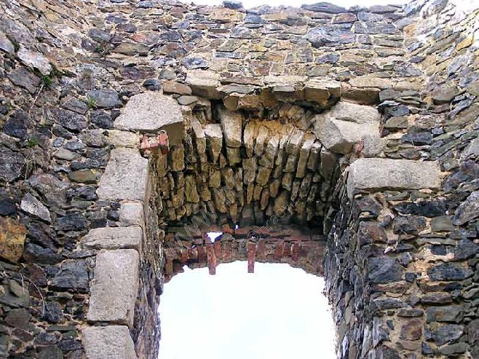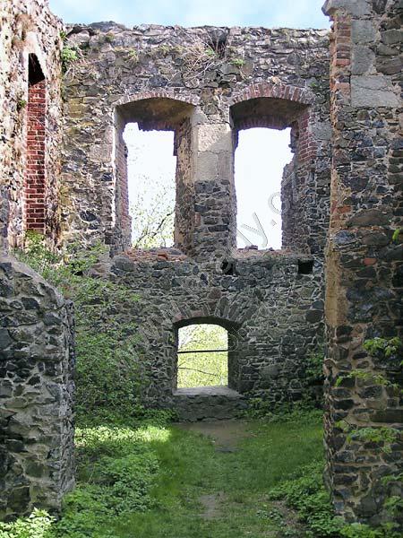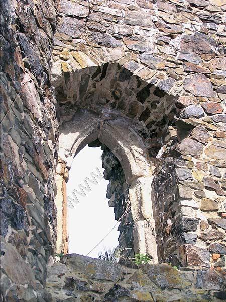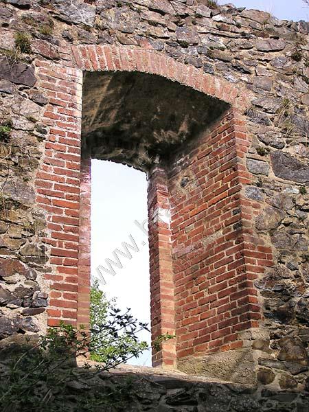 Detail rozpadajícího se ostění okna v čele severní části paláce