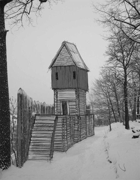 Ukázka opevnění se strážní věží jako rozhlednou.