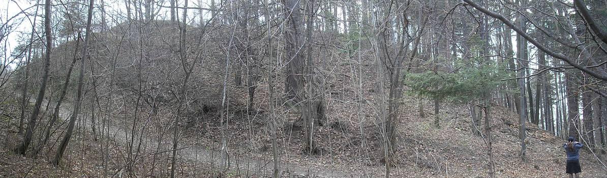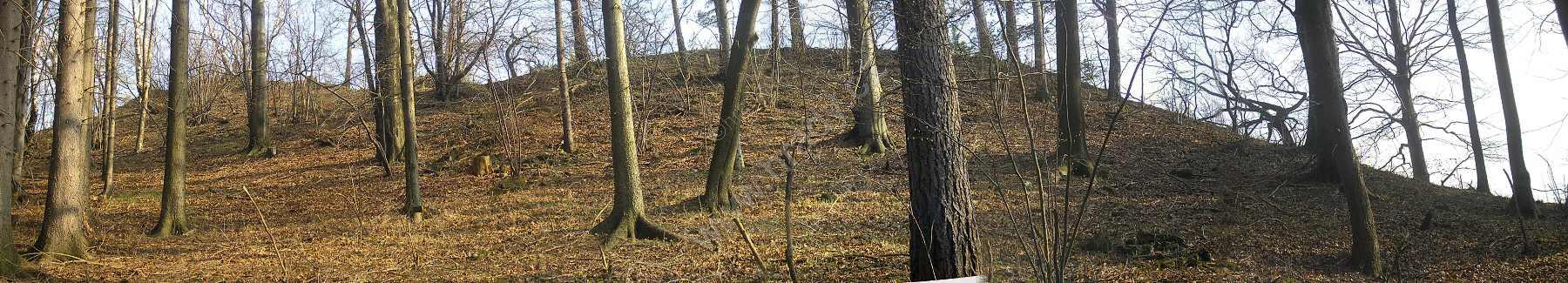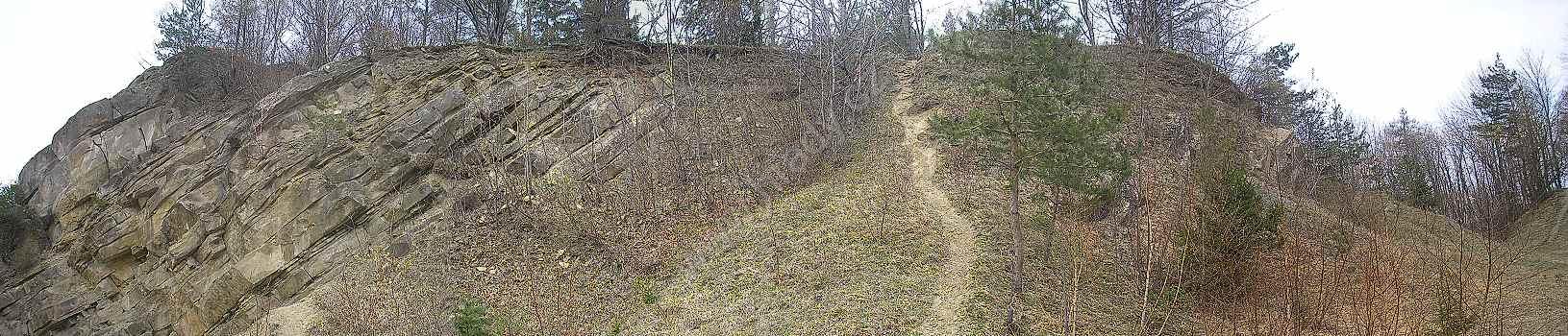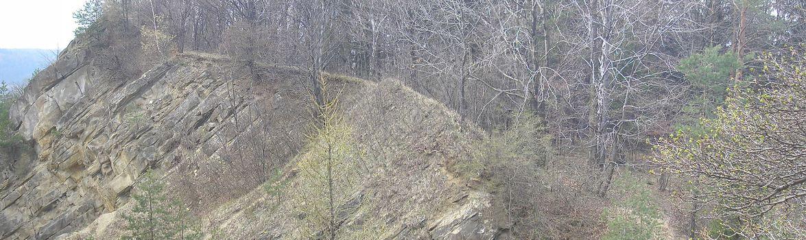 Pohled na opevnění z východní strany, z prostoru bývalého lomu, který část lokality poškodil.