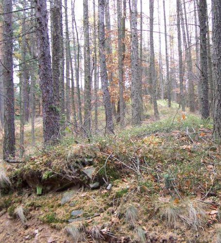 Pohled, na ne zrovna dobře zachovalý vnitřní val hradiště.