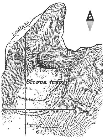 Otaslavice 2. Půdorysný plán hradiště (podle I. L. Červinky z přelomu 19. a 20. stol.)