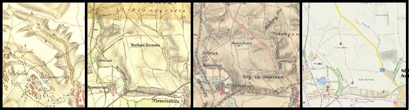 Výřez map - 1/ 1764-1768 2/ 1836-1852 3/ 1876-1878 4/ 2022